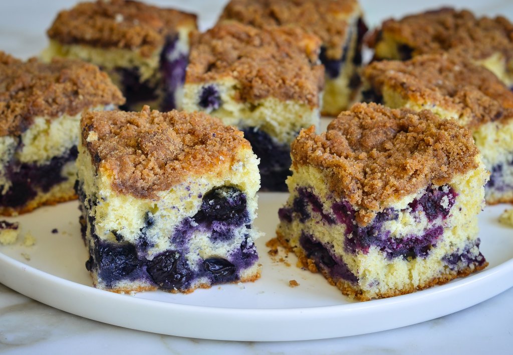 2. Spread half of batter in greased 2-quart glass baking dish. Spread half of blueberries on batter, sprinkle with half of topping. Repeat layers; batter, berries, topping.